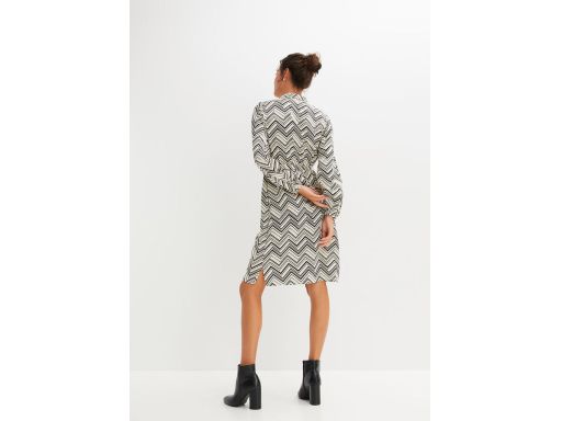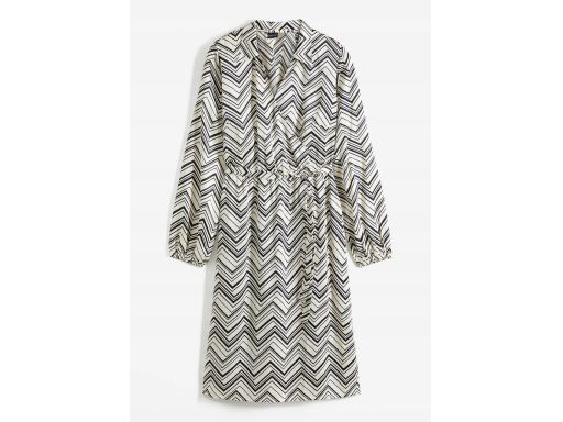 B.P.C sukienka satynowa śmietankowa w czarne wzory midi ^46