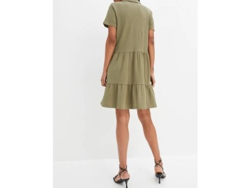 B.P.C sukienka shirtowa khaki z falbanami 40/42.