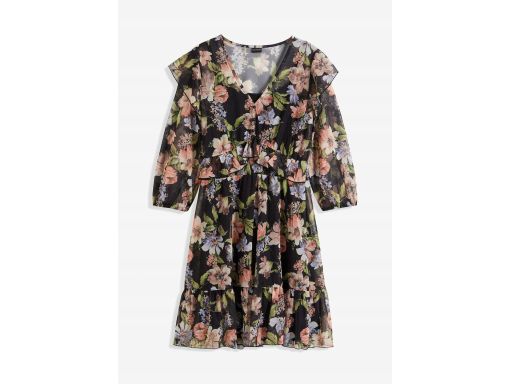 B.P.C sukienka siateczkowa w kwiaty z falbankami 36/38.