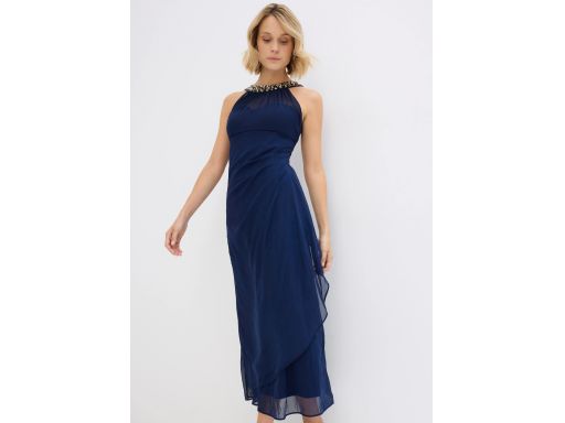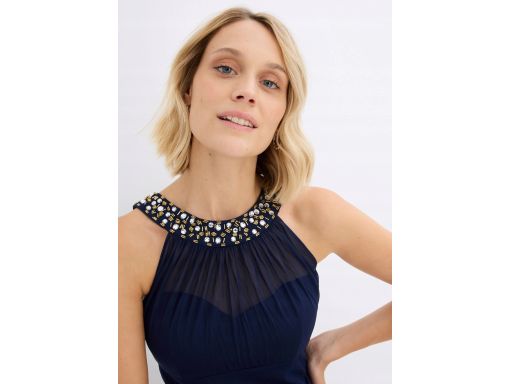 B.P.C sukienka siateczkowa z aplikacją długa granatowa r.46