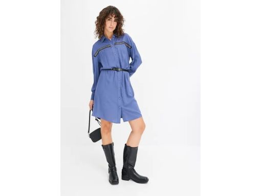 B.P.C sukienka szmizjerka niebieska z nitami i paskiem r.46