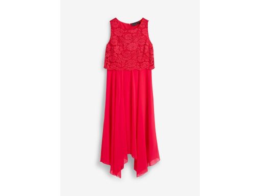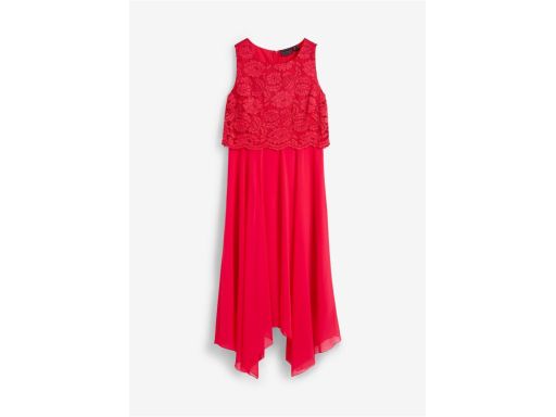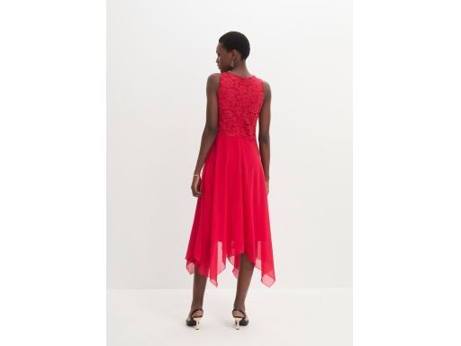 B.P.C sukienka szyfonowa asymetryczna czerwona z koronką r.38