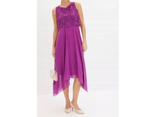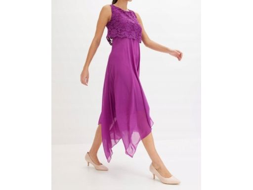 B.P.C sukienka szyfonowa asymetryczna fioletowa z koronką 36.