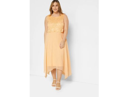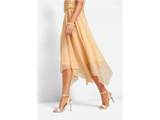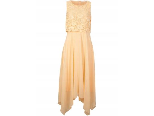 B.P.C sukienka szyfonowa asymetryczna morelowa z koronką 42.
