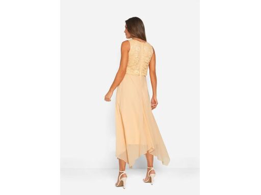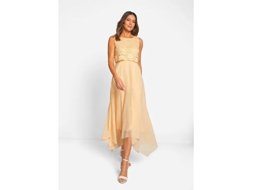 B.P.C sukienka szyfonowa asymetryczna morelowa z koronką 44.