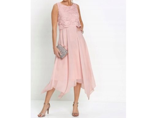 B.P.C sukienka szyfonowa asymetryczna różowa z koronką 38.
