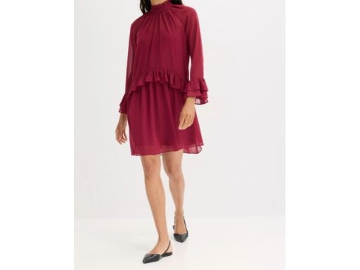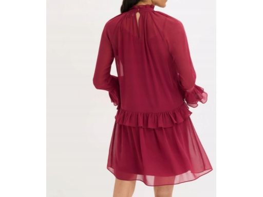 B.P.C sukienka szyfonowa bordowa z falbanami r.40