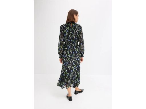 B.P.C sukienka szyfonowa czarna w kwiaty midi 42.