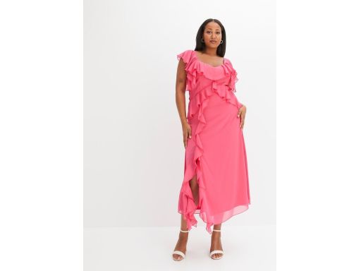 B.P.C sukienka szyfonowa długa maxi z falbankami różowa r.42