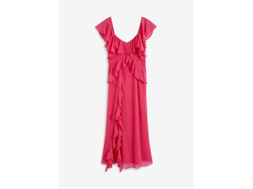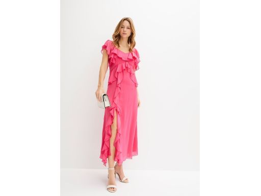 B.P.C sukienka szyfonowa długa maxi z falbankami różowa r.44