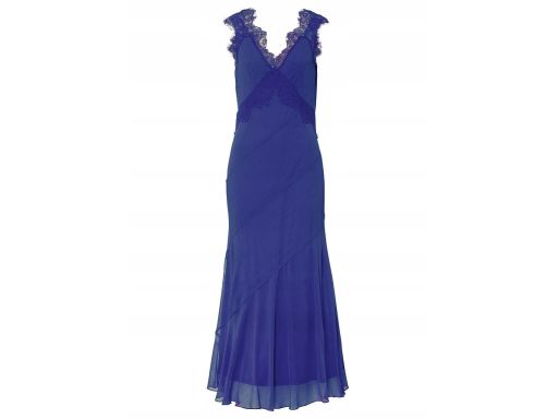 B.P.C Sukienka szyfonowa długa maxi z koronką chabrowa ^38