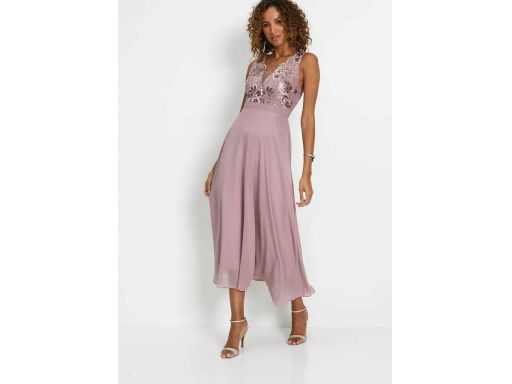 B.P.C sukienka szyfonowa długa pudrowy róż z cekinami r.44