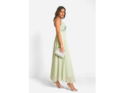 B.P.C sukienka szyfonowa długa z cekinami miętowa r.46