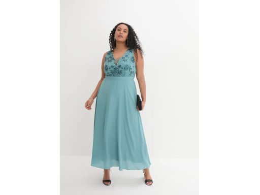 B.P.C sukienka szyfonowa długa z cekinami niebieski mineralny ^38