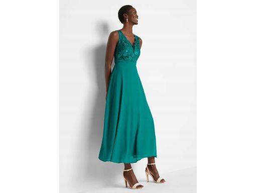 B.P.C sukienka szyfonowa długa zielona z cekinami PREMIUM 36.