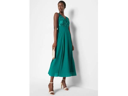 B.P.C sukienka szyfonowa długa zielona z cekinami 36.