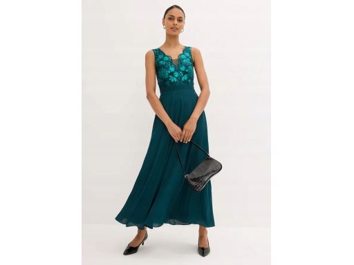 B.P.C sukienka szyfonowa długa zielona z cekinami r.40