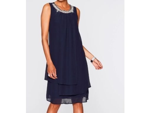 B.P.C sukienka szyfonowa granatowa z aplikacją przy dekolcie ^36