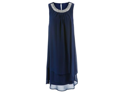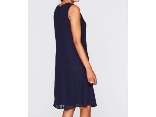 B.P.C sukienka szyfonowa granatowa z aplikacją przy dekolcie r.36