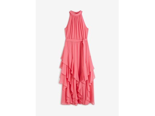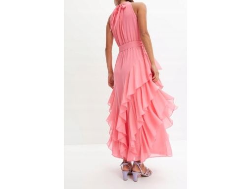 B.P.C sukienka szyfonowa różowa maxi długa z falbankami 40.