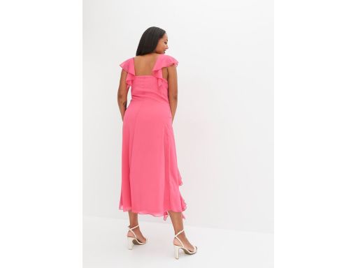 B.P.C sukienka szyfonowa różowa z falbankami 44.