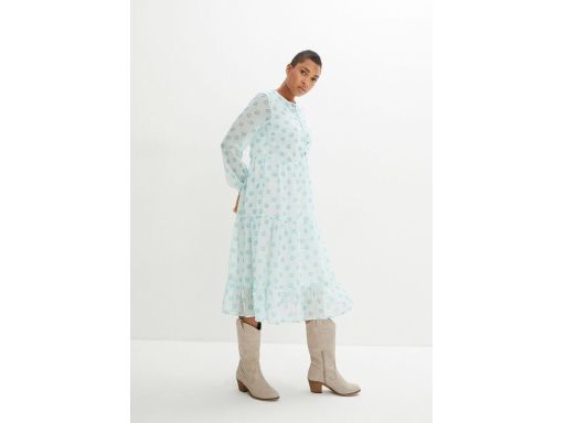 B.P.C sukienka szyfonowa turkusowa we wzory r.54