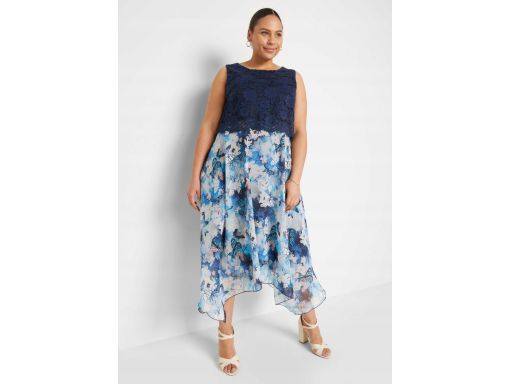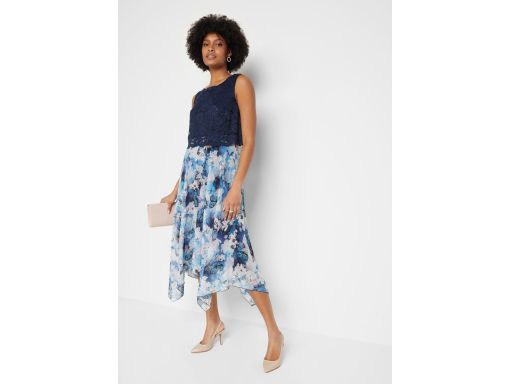 B.P.C sukienka szyfonowa w kwiaty z koronkową górą ^36