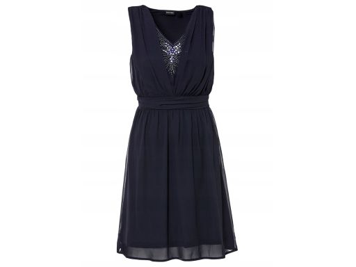 B.P.C sukienka szyfonowa z aplikacją granatowa 42