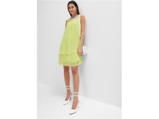 B.P.C sukienka szyfonowa z aplikacją Premium limonkowa r.44