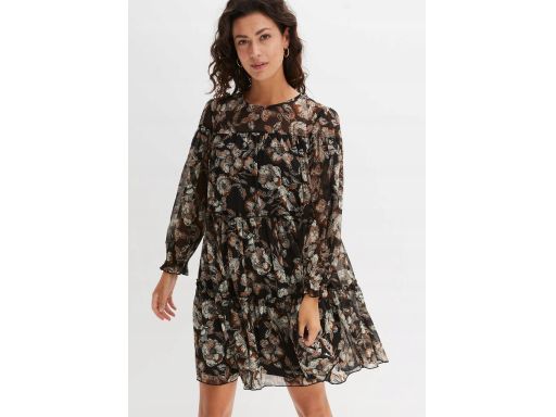 B.P.C Sukienka szyfonowa z falbanami w kwiaty ^44