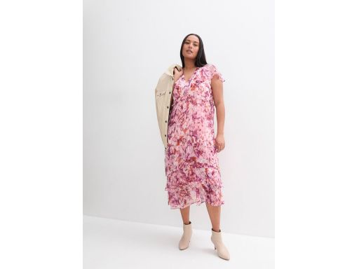B.P.C sukienka szyfonowa z falbankami midi w kwiaty r.46