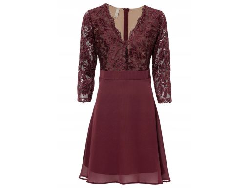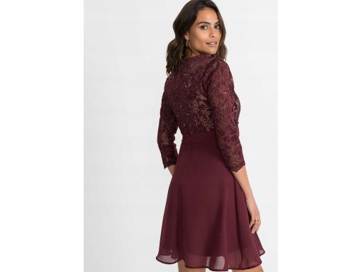 B.P.C sukienka szyfonowa z koronką bordowa 36/38.
