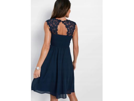 B.P.C sukienka szyfonowa z koronką granatowa 52.