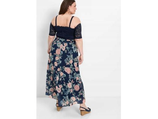 - Dół szyfonowy granatowy w kolorowe kwiaty