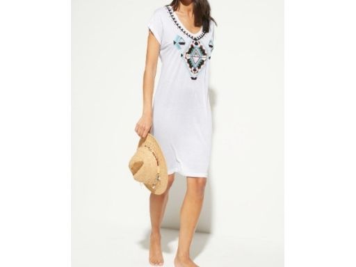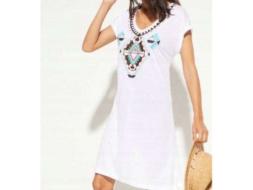 B.P.C sukienka tunika plażowa biała z nadrukiem 44/46.