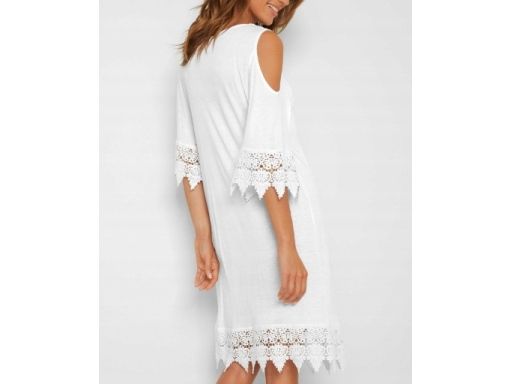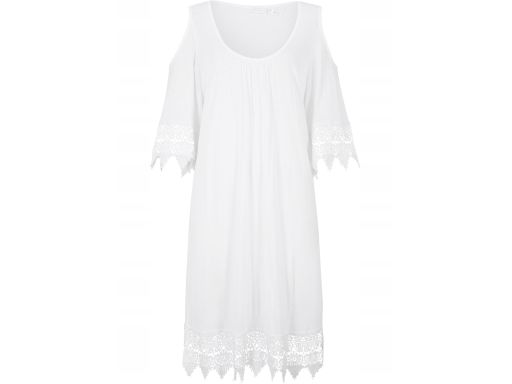 B.P.C sukienka tunika plażowa odkryte ramiona biała z koronką r.40/42