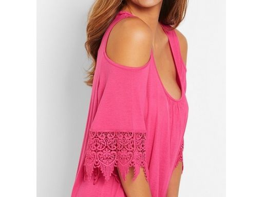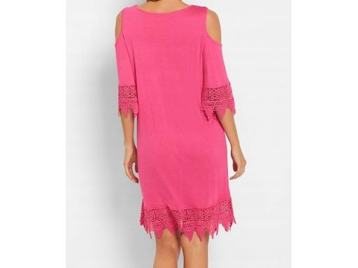 B.P.C sukienka tunika plażowa odkryte ramiona różowa z koronką r.44/46