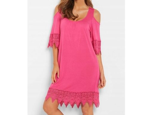 B.P.C sukienka tunika plażowa odkryte ramiona różowa z koronką r.44/46