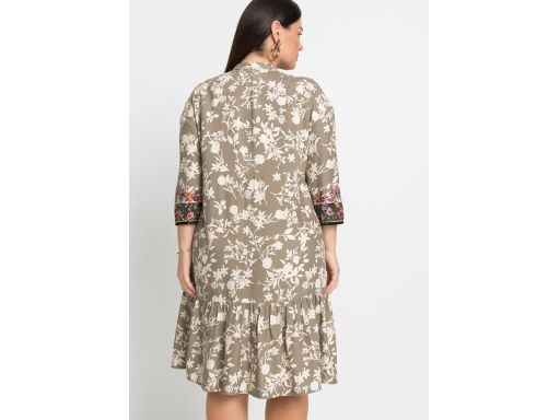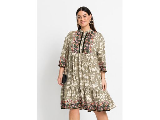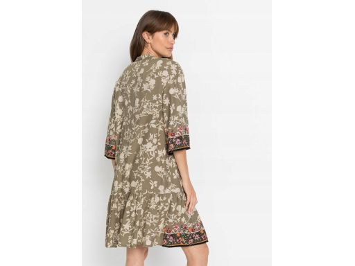 B.P.C sukienka tunikowa oliwkowa w kolorowe kwiaty ^38