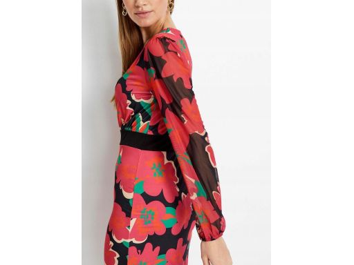 B.P.C sukienka w kwiaty z siateczkowymi rękawami ^36/38