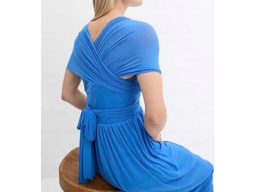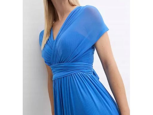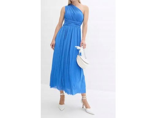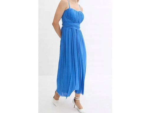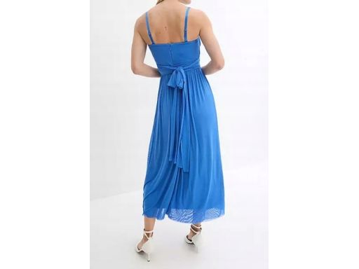 B.P.C sukienka wieczorowa niebieska siateczkowa z wywiązaniem r.44