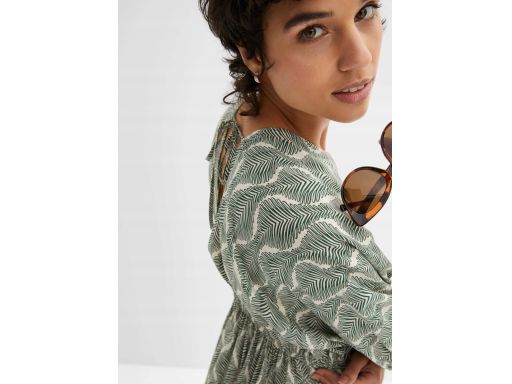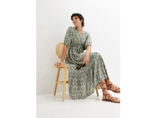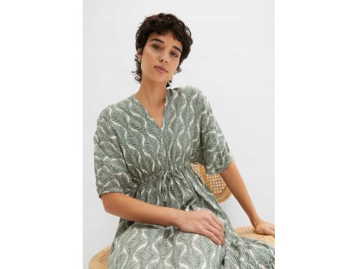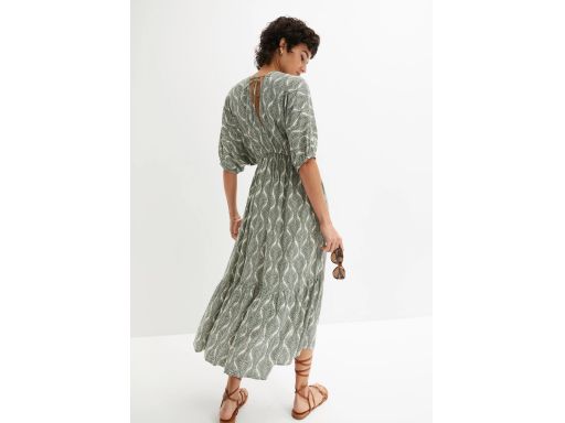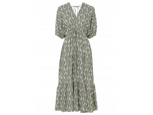 B.P.C sukienka wiskozowa midi beżowa z zielonym wzorem ^50
