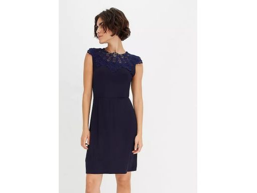 B.P.C sukienka wiskozowa z koronką granat r.32/34