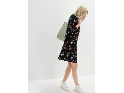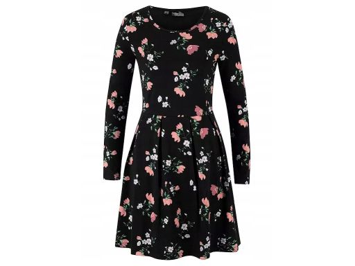 B.P.C sukienka z dżerseju czarna w kolorowe kwiatki r.40/42
