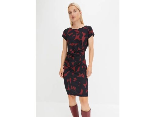 B.P.C sukienka z dżerseju czarno-bordowa z marszczeniem r.44/46