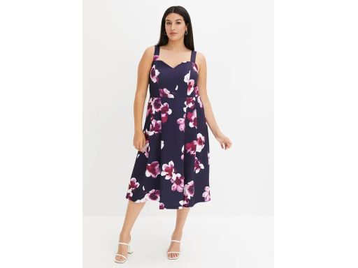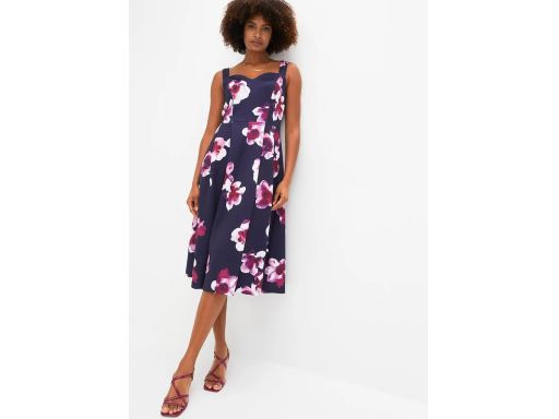 B.P.C sukienka z dżerseju granatowa w duże kolorowe kwiaty ^36/38