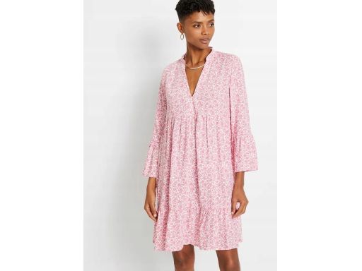 B.P.C sukienka z falbanami biało-różowa ^34