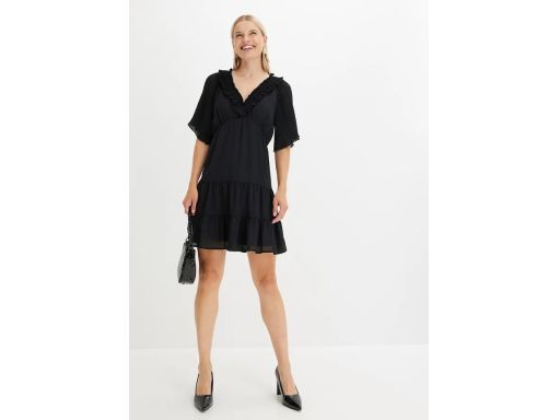 B.P.C sukienka z falbanami i plisowaniem czarna 40.
