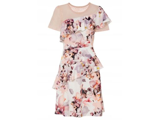 B.P.C Sukienka z koronką i falbanką w kwiaty r.36/38