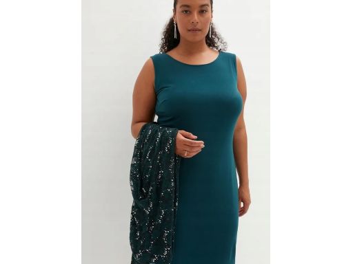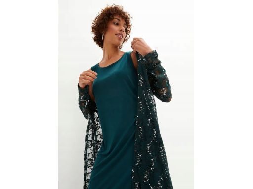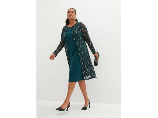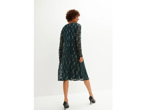 B.P.C sukienka z koronkową narzutką z cekinami butelkowa zieleń ^40/42